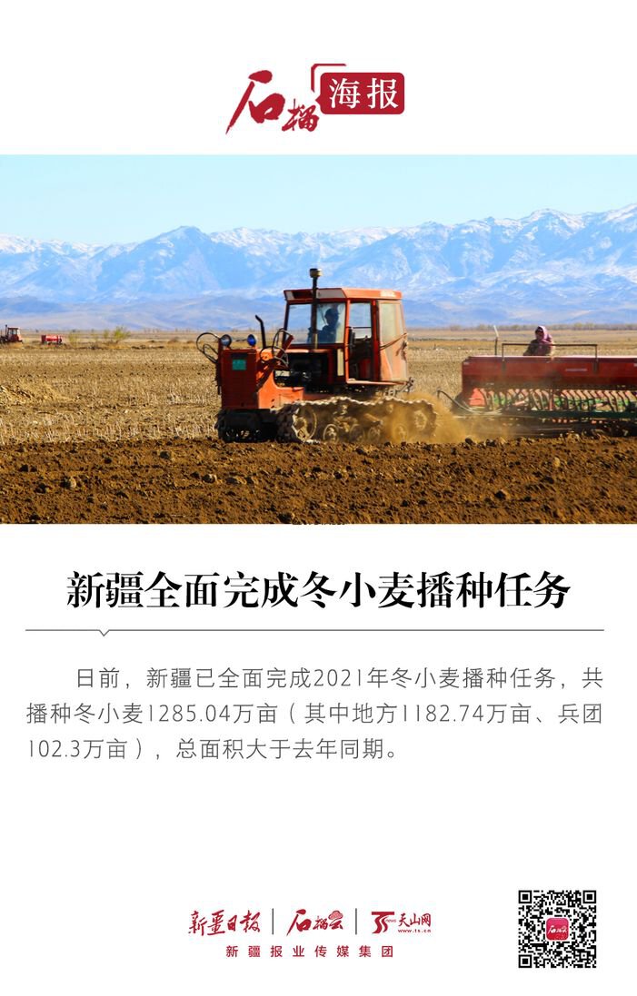 天山网-新疆日报讯(记者刘毅报道)记者从自治区农业农村厅获悉:日前,新疆已全面完成2021年冬小麦播种任务,共播种冬小麦1285.04万亩(其中地方1182.74万亩、兵团102.3万亩),总面积大于去年同期,实现了播种面积不低于去年实际种植面积的工作目标。