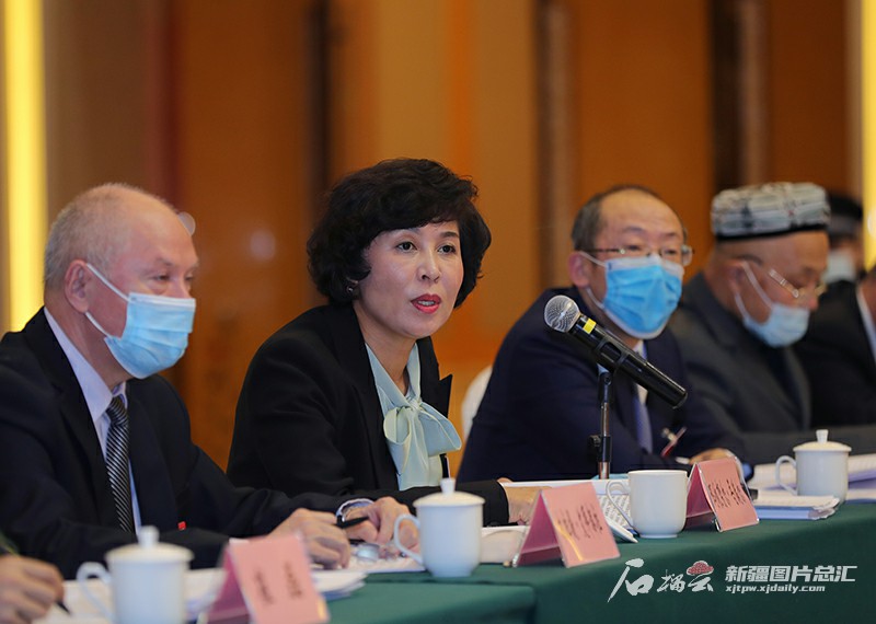 1月23日,玛依努尔·吾满尔代表围绕创业社区建设等问题发言。天山网-新疆日报记者 崔志坚摄