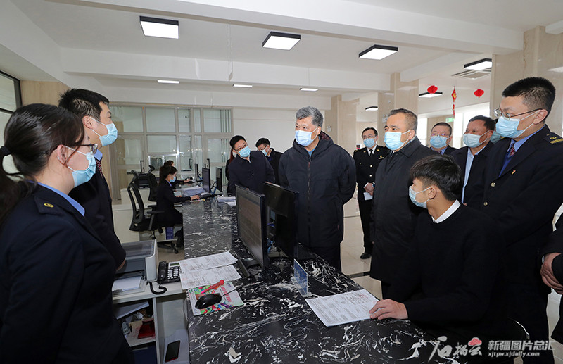2月12日,自治区党委书记马兴瑞在阿拉山口铁路国际联运大楼了解中欧班列开行、口岸经济发展情况。 天山网-新疆日报记者崔志坚 摄