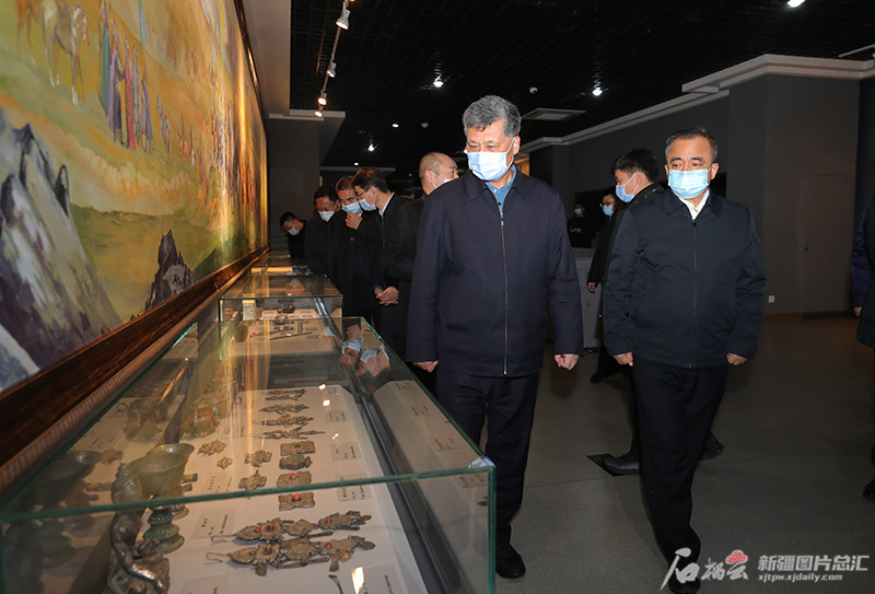2月12日,自治区党委书记马兴瑞在博尔塔拉蒙古自治州博物馆,详细了解当地历史文化、各民族交往交流交融、风土人情等情况。天山网-新疆日报记者崔志坚 摄
