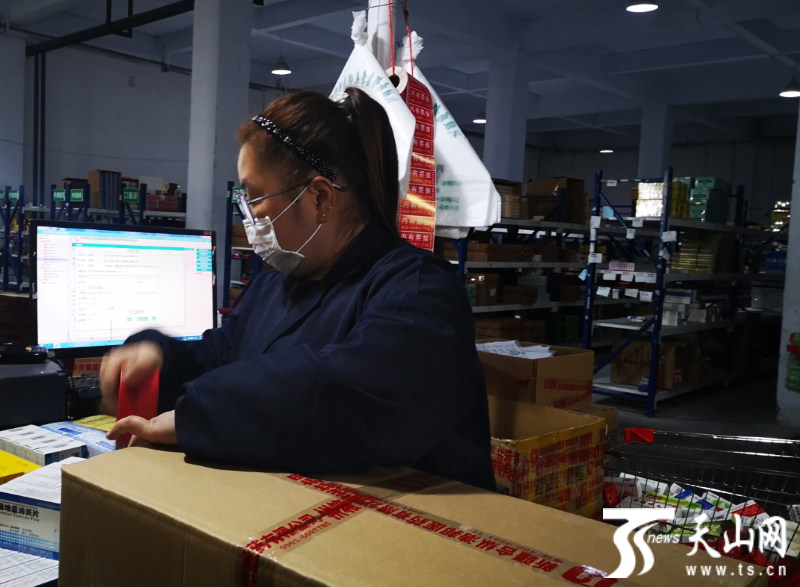 3月8日,在新疆药都惠药业有限公司的药品仓储区,工作人员正在对药品进行核验打包。天山网-新疆日报记者 黑宏伟摄