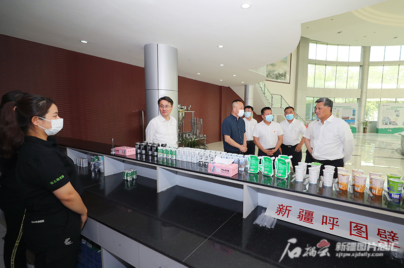 6月19日,自治区党委书记马兴瑞在西域春乳业详细了解企业品牌建设、产品销售以及吸纳大学毕业生就业等情况。天山网-新疆日报记者 崔志坚摄