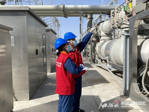 4月6日,±1100千伏昌吉换流站员工巡视站内设备。 通讯员 朱丽雅摄(资料图片)