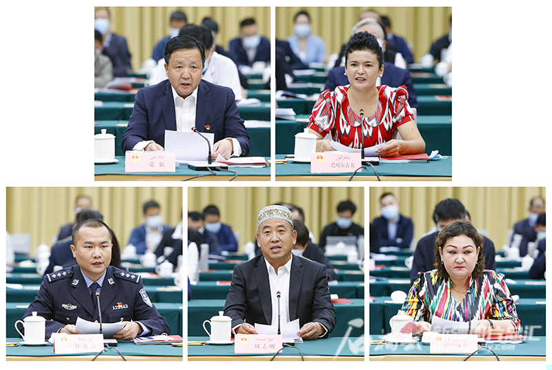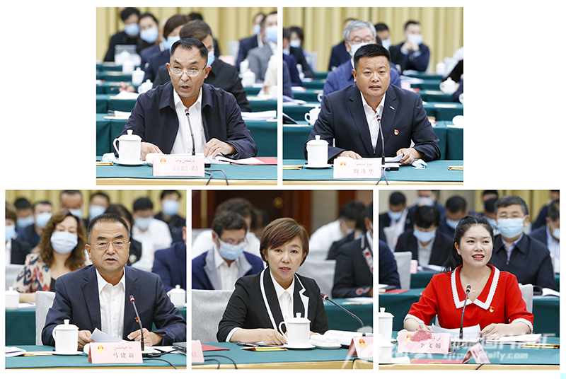 会上,张新、巴哈尔古力、任礼亮、周志明、阿依夏木姑丽·毛拉、艾尔肯江·胡吉、周连华、马建新、陈珏、李文娟代表先后发言,结合自身履职经历和基层调研成果,就发挥人大代表作用,壮大优势产业助力经济高质量发展、带头维护民族团结铸牢中华民族共同体意识、立足基层岗位保障社会稳定、推进新疆伊斯兰教中国化、广泛联系群众解决困难诉求、发挥专业优势助力疫情防控、建好用好代表联络站、发展全过程人民民主、深入推进依法治疆、扎根基层服务群众凝聚人心等工作,畅谈履职感受,交流工作体会,提出意见建议。马兴瑞认真听取发言,与大家互动交流,要求有关部门及时研究吸纳各项意见建议,做好人大代表履职宣传工作。