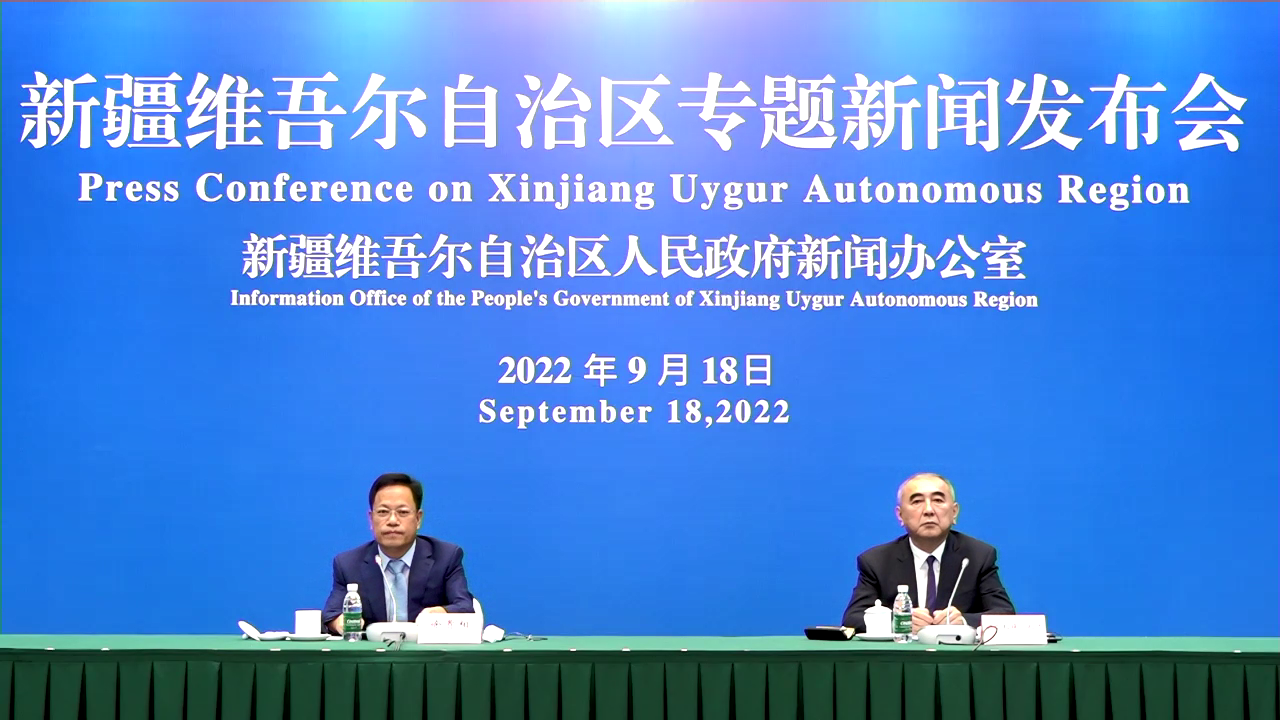 9月18日,新疆维吾尔自治区专题新闻发布会在北京召开,图为新闻发布会现场。程炜强摄