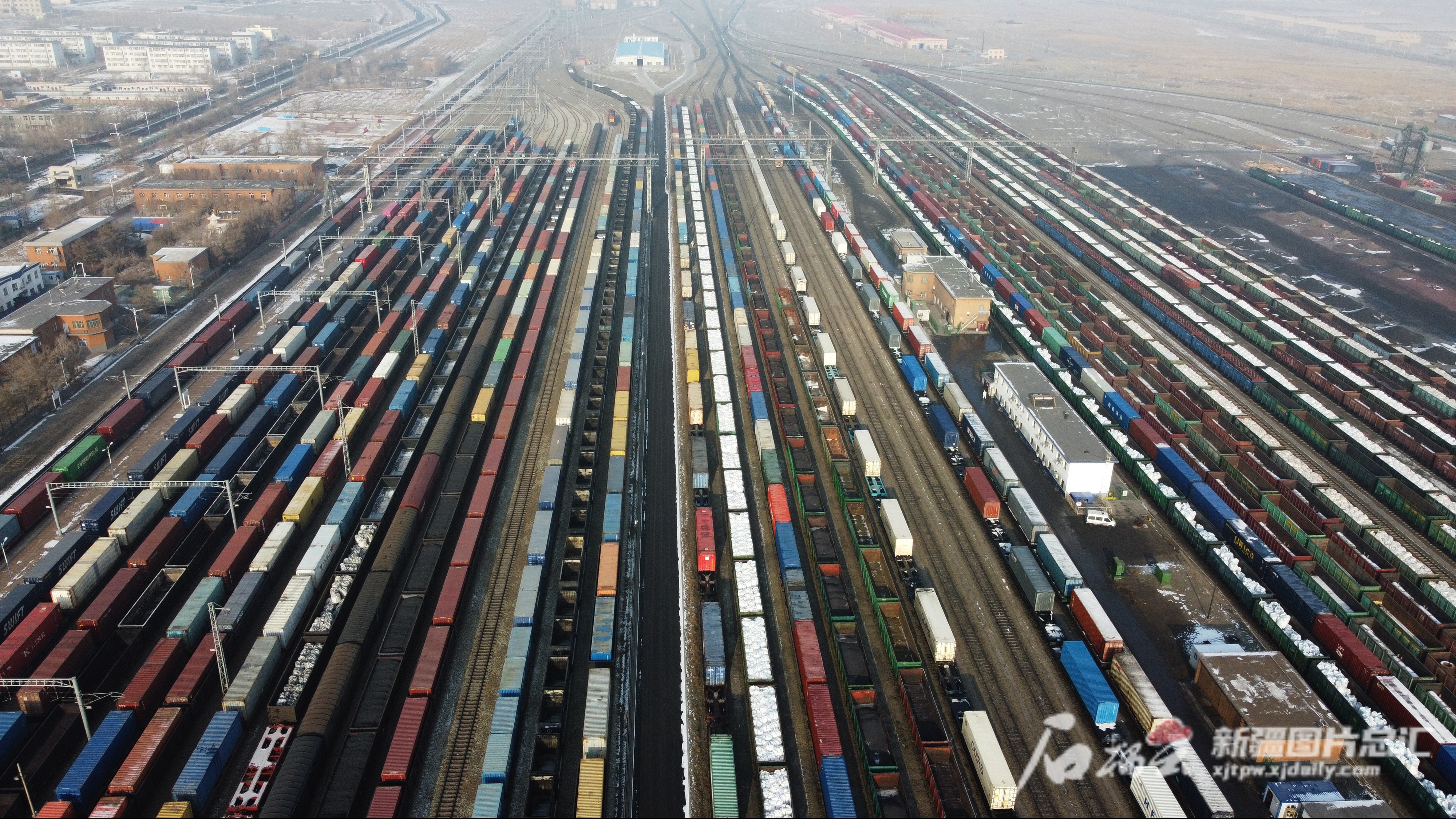 阿拉山口站内停靠着待发的中欧(中亚)班列。 陈乾摄