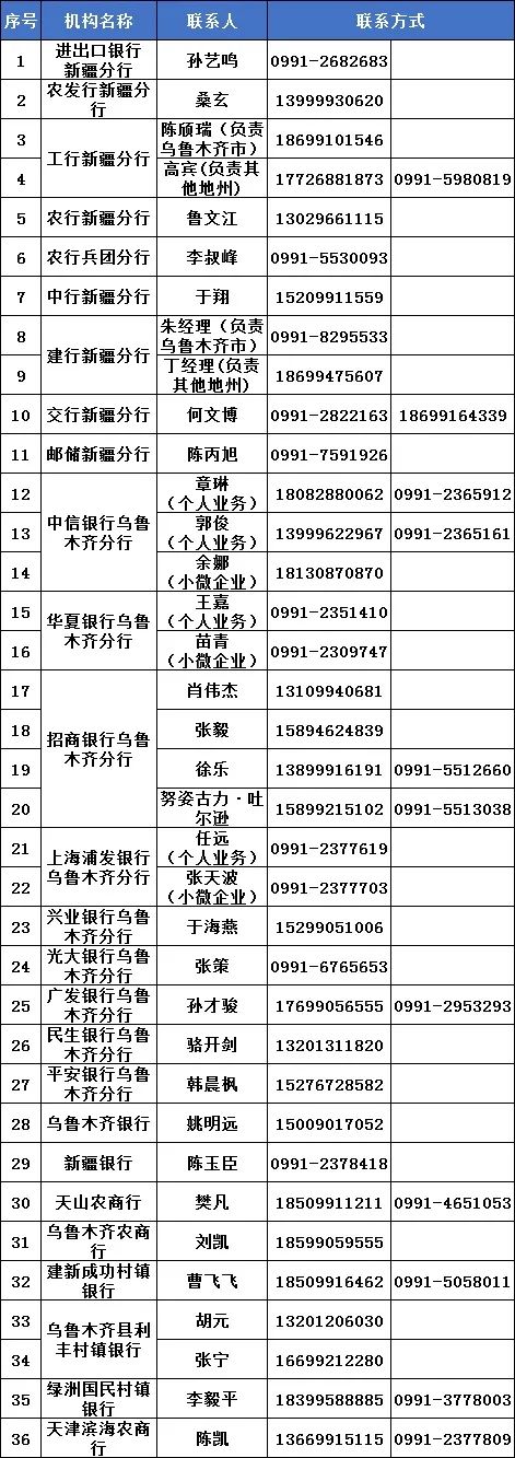 新疆银行业金融机构助企纾困服务热线