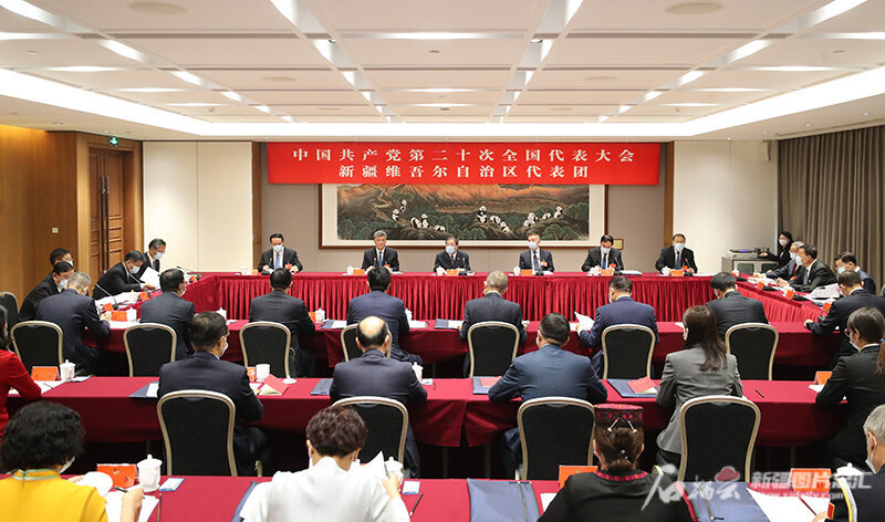 10月15日,出席中国共产党第二十次全国代表大会的新疆维吾尔自治区代表团举行全体会议。天山网-新疆日报记者 崔志坚摄