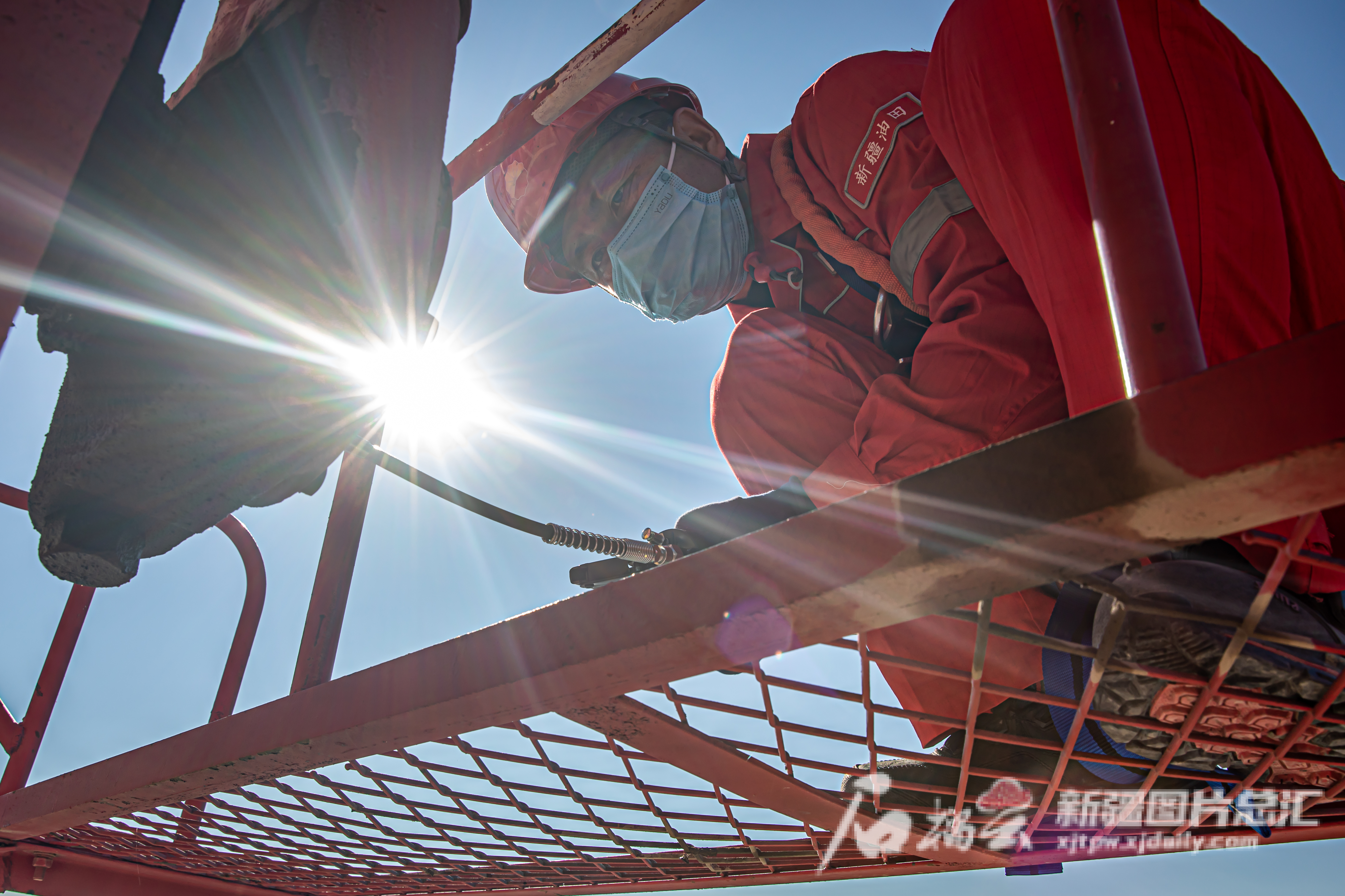 10月9日,新疆油田公司采油一厂员工给抽油机中轴打黄油,做好抽油机保养工作,确保冬季生产安全平稳运行。徐志远摄