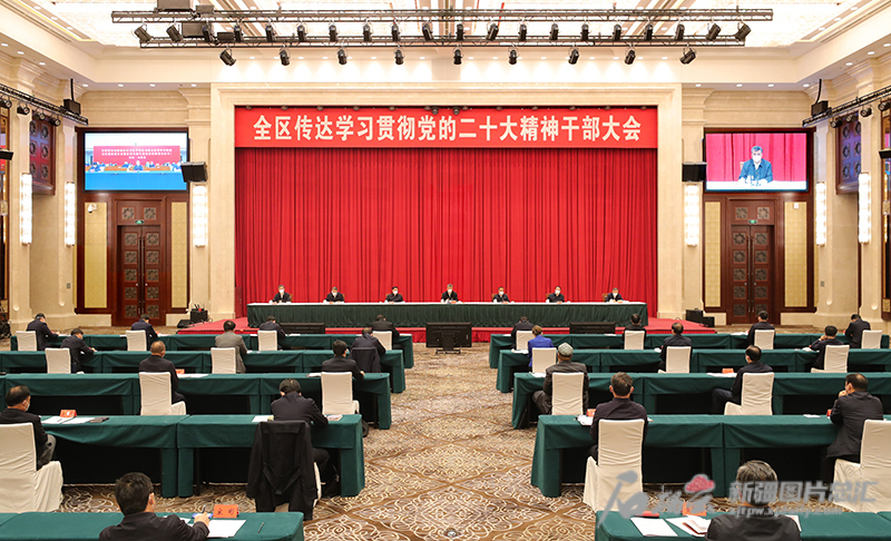 天山网-新疆日报讯(记者王兴瑞 刘翔报道)全区传达学习贯彻党的二十大精神干部大会10月26日上午召开,安排部署学习宣传贯彻党的二十大精神各项工作。自治区党委书记,兵团党委第一书记、第一政委马兴瑞出席会议并讲话,强调要把学习宣传贯彻党的二十大精神作为当前和今后一个时期首要政治任务,全面贯彻习近平新时代中国特色社会主义思想,深刻领悟“两个确立”的决定性意义,坚定历史自信,增强历史主动,弘扬伟大建党精神,以强烈政治责任感推动党的二十大精神在天山南北全面落地生根,团结带领全区各族干部群众紧跟总书记、奋进新征程,完整准确贯彻新时代党的治疆方略,聚焦新疆工作总目标,在新时代新征程上奋力谱写全面建设社会主义现代化国家、全面推进中华民族伟大复兴的新疆篇章。