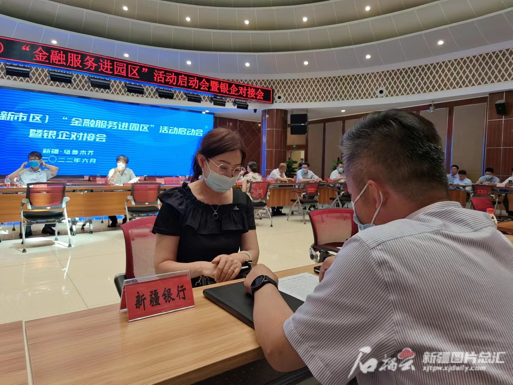 新疆银行参加乌鲁木齐高新技术产业开发区(新市区)“金融服务进园区”银企对接会。新疆银行提供。
