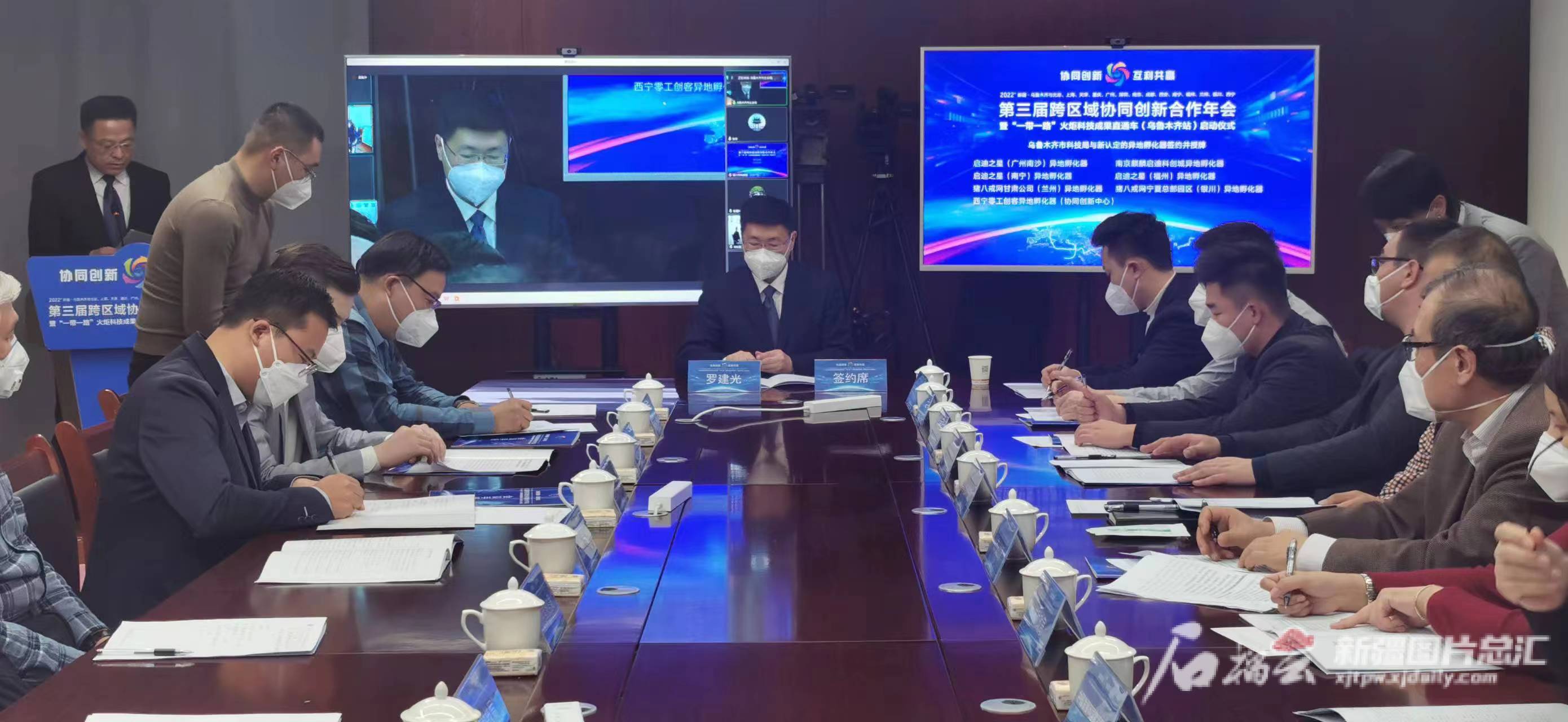 年会以网络视频会议形式,主会场+分会场的方式召开,乌鲁木齐设主会场。乌鲁木齐市科技局与广州市科技局、南京市科技局、福州市科技局、南宁市科技局、兰州市科技局、银川市科技局、西宁市科技局签订跨区域协同创新合作协议,并与中国发展网国家援疆平台签署共建“全国科技援疆城市协作平台”的战略合作框架协议。15城市科技部门共同发布《2022’深化丝路跨区域协同创新合作倡议书》。此外,乌鲁木齐新备案评定的7家异地孵化器载体被授牌。