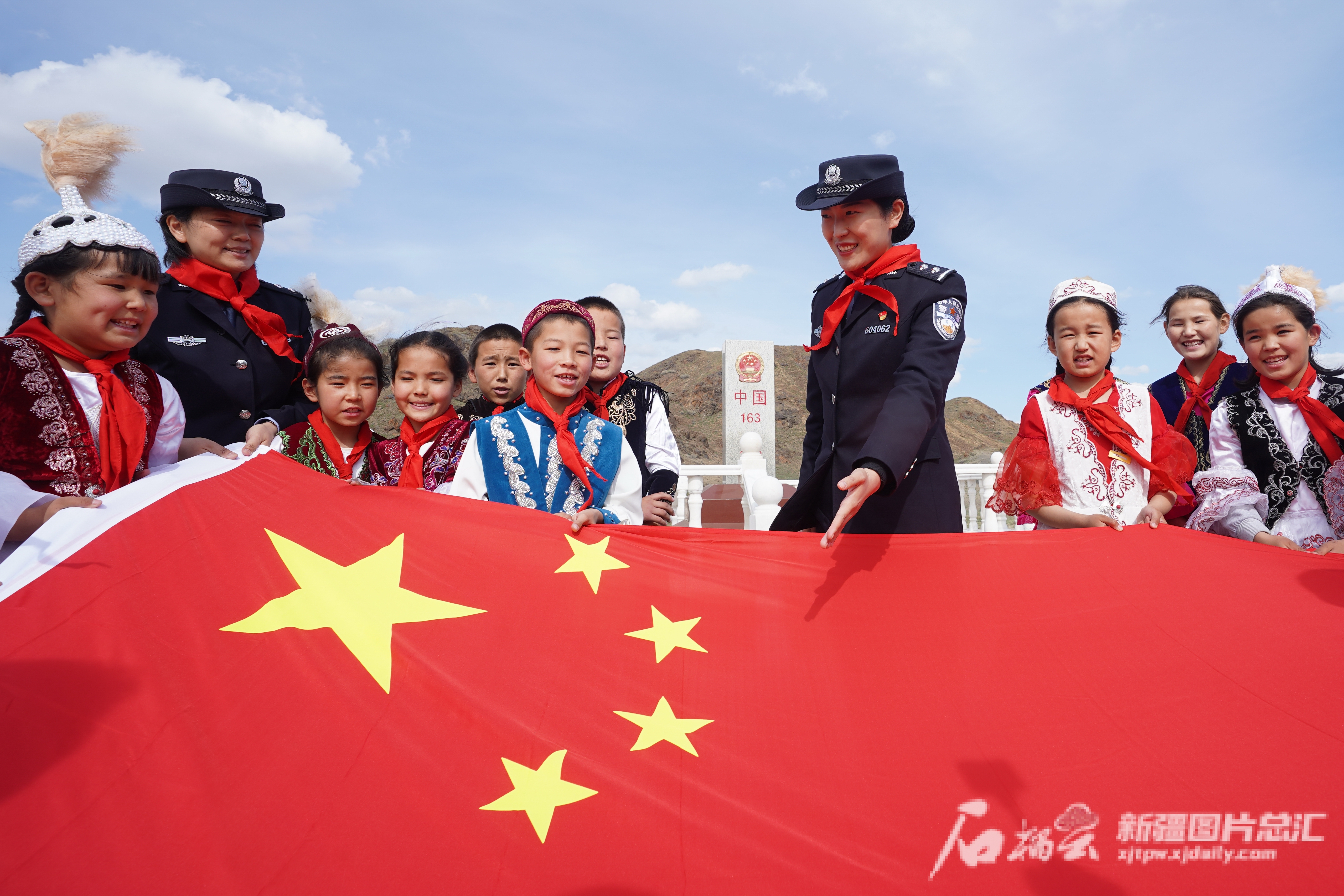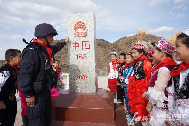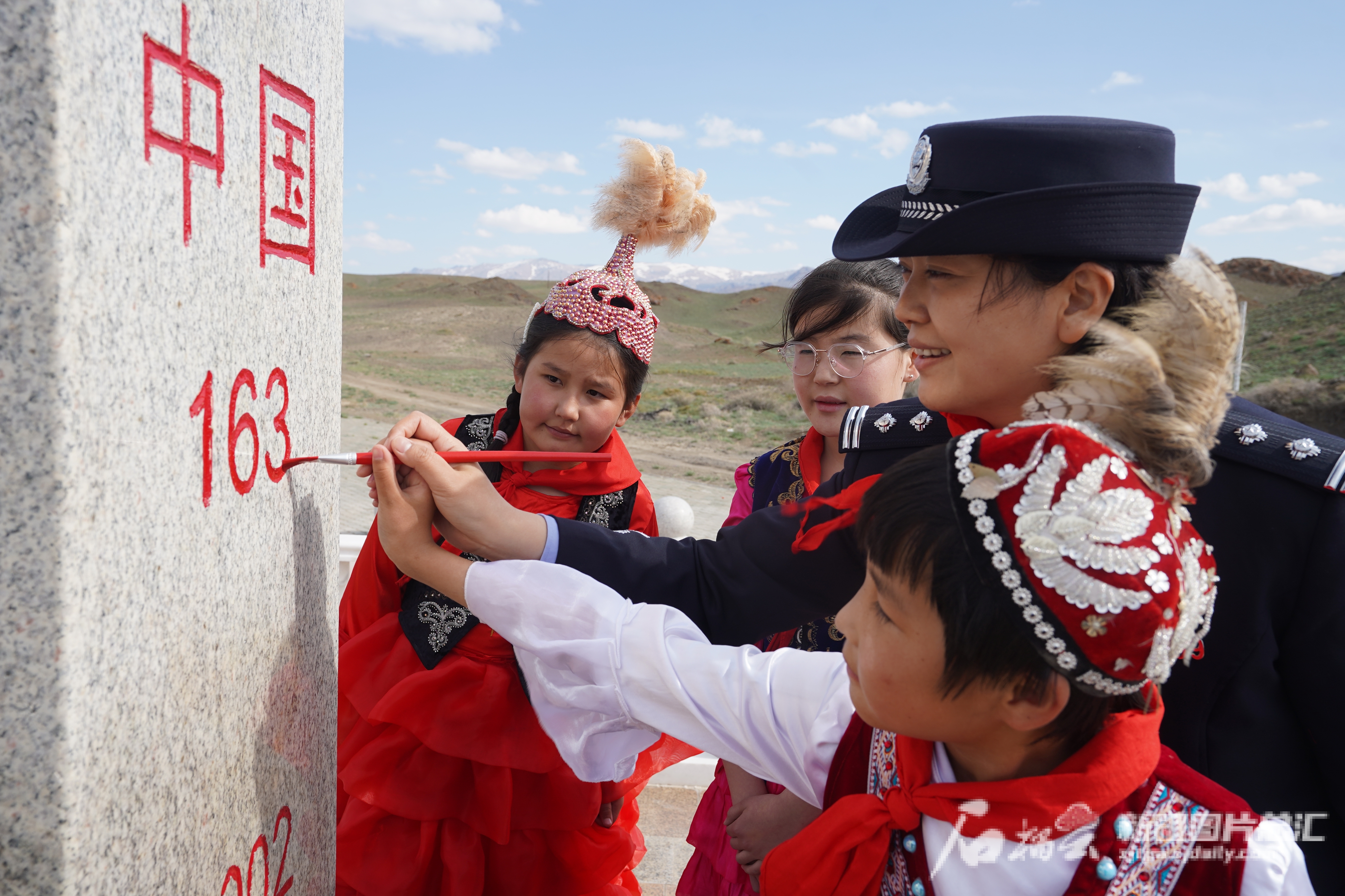 新疆出入境边防检查总站乌拉斯台出入境边防检查站站长曹享懿介绍,作为守卫祖国西北大门的国门卫士,在“六一”国际儿童节当天,与同学们在祖国边境线上,一起擦拭163号界碑,为它描红,在孩子们心中厚植爱国主义情怀,一起度过了一个别样的节日。