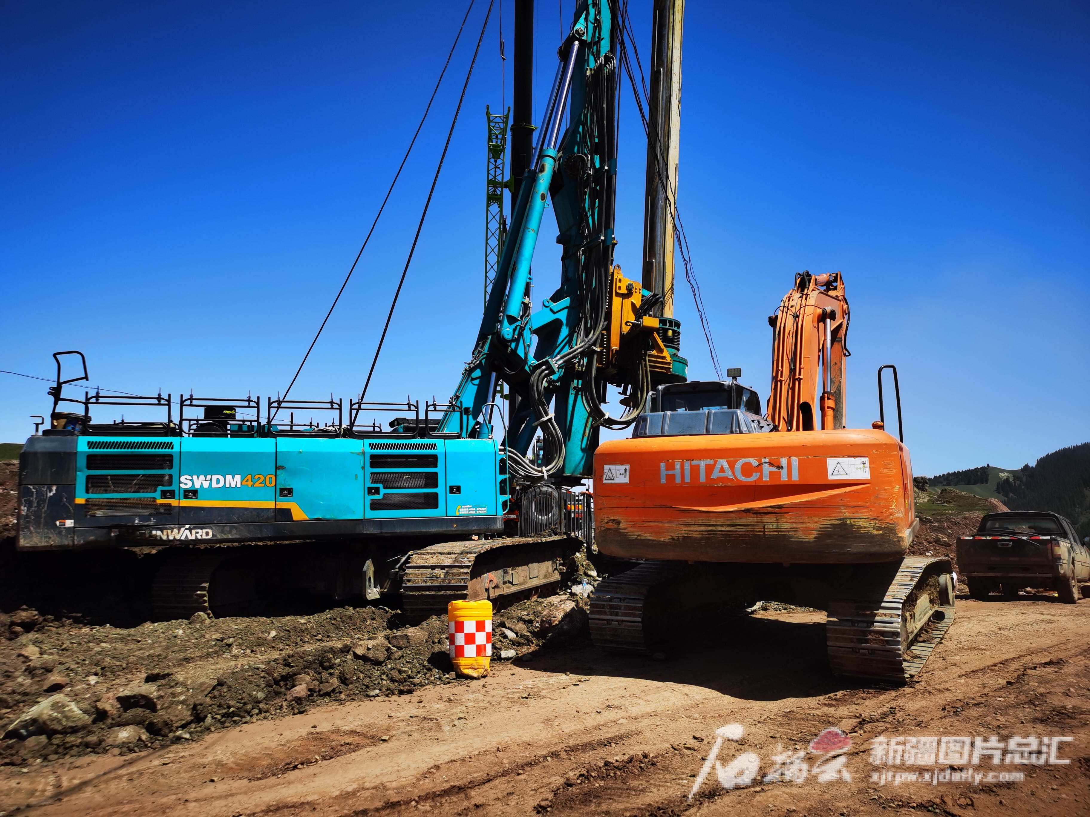 5月18日,建设者在国道218线那拉提至巴仑台公路项目加紧施工。天山网-新疆日报记者 逯风暴摄