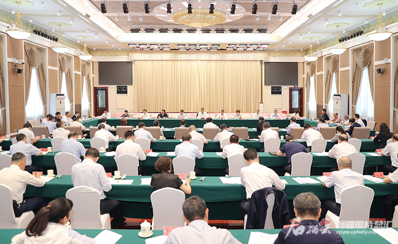 自治区党委副书记、自治区主席艾尔肯·吐尼亚孜主持会议。自治区人大常委会主任祖木热提·吾布力、自治区政协主席努尔兰·阿不都满金、自治区党委副书记张春林出席会议。