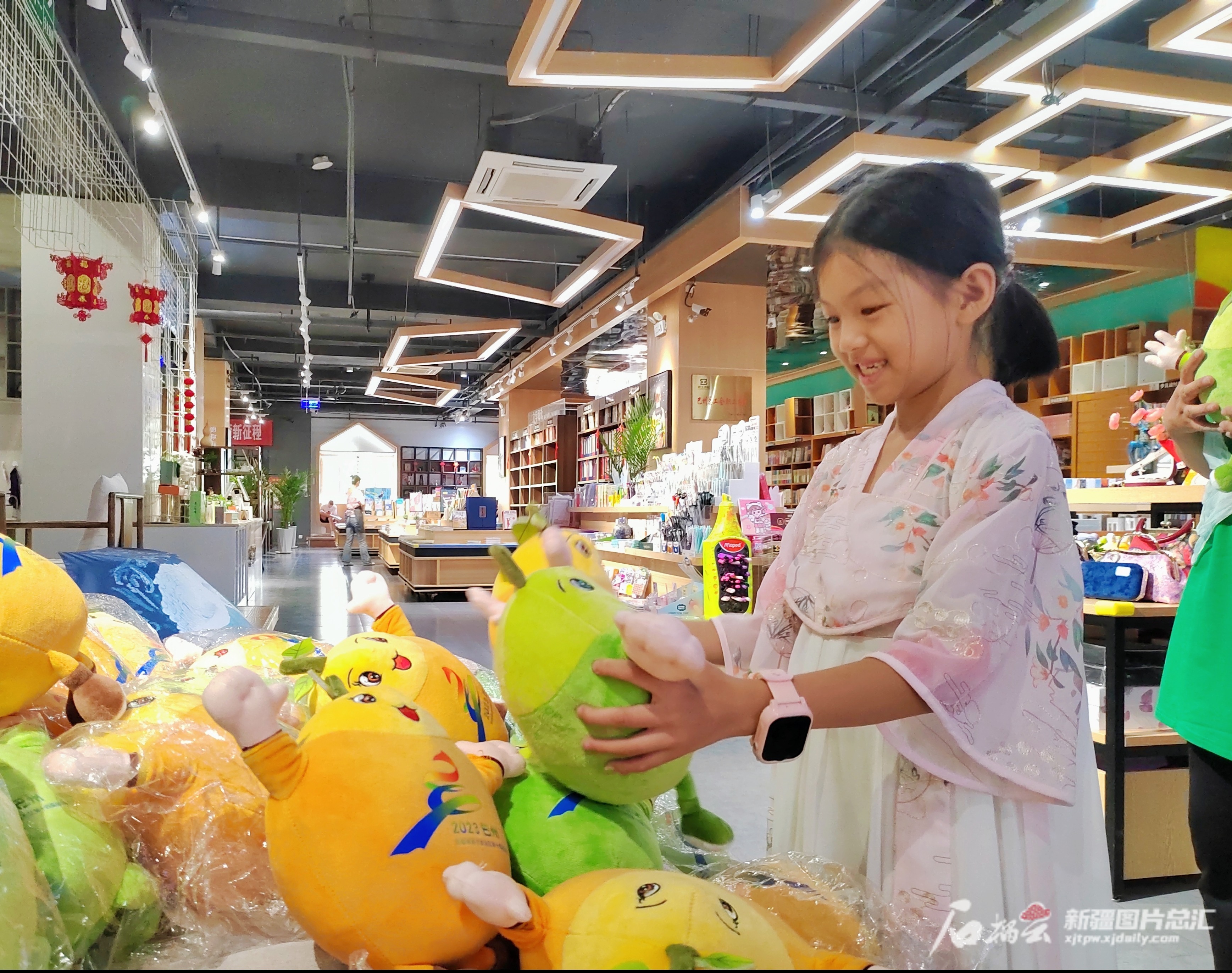 当日,记者在库尔勒市巴音西路铂鑫大厦二楼的聆壹阁书店内看到,不时有前来咨询或购买文创纪念品的市民。