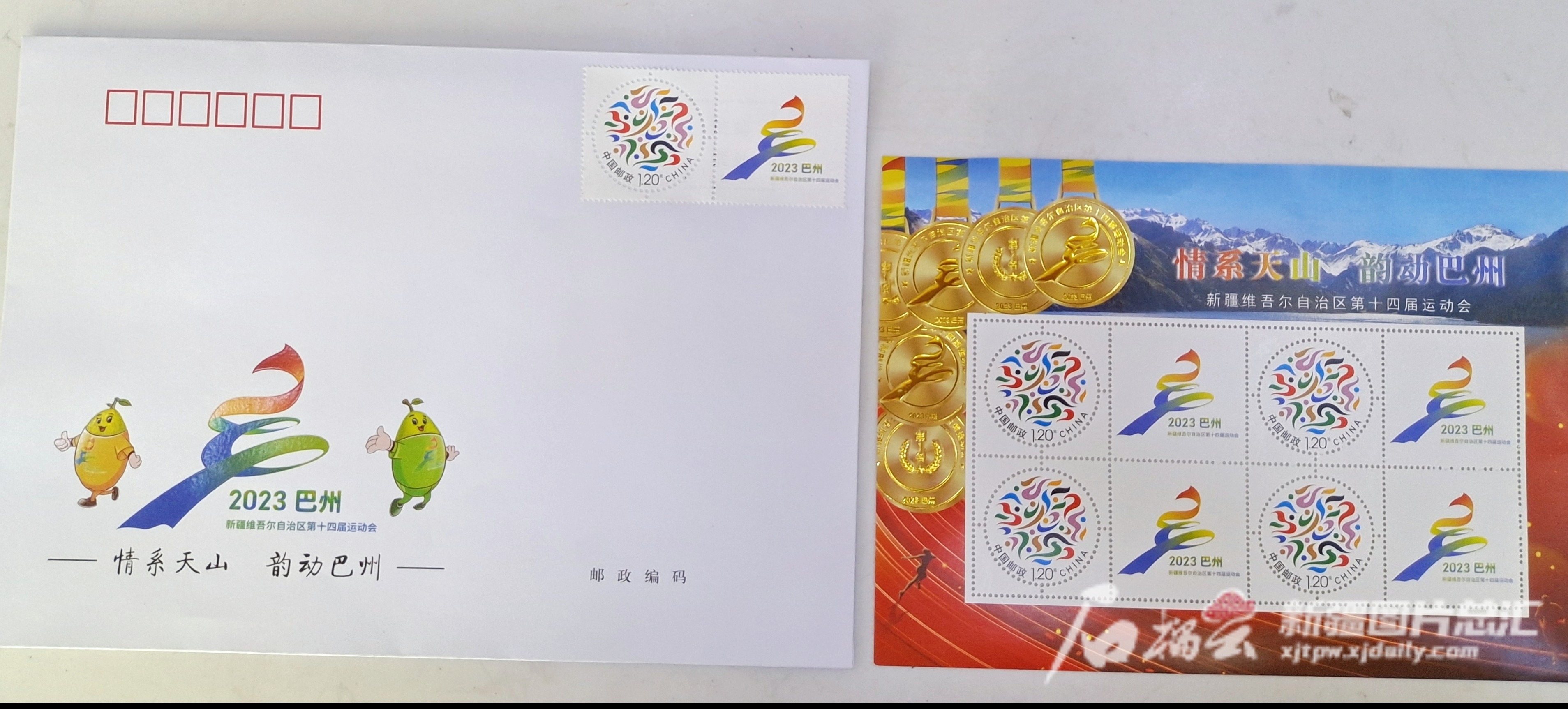 自治区十四运首日封和纪念邮票。天山网-新疆日报记者 董亮摄