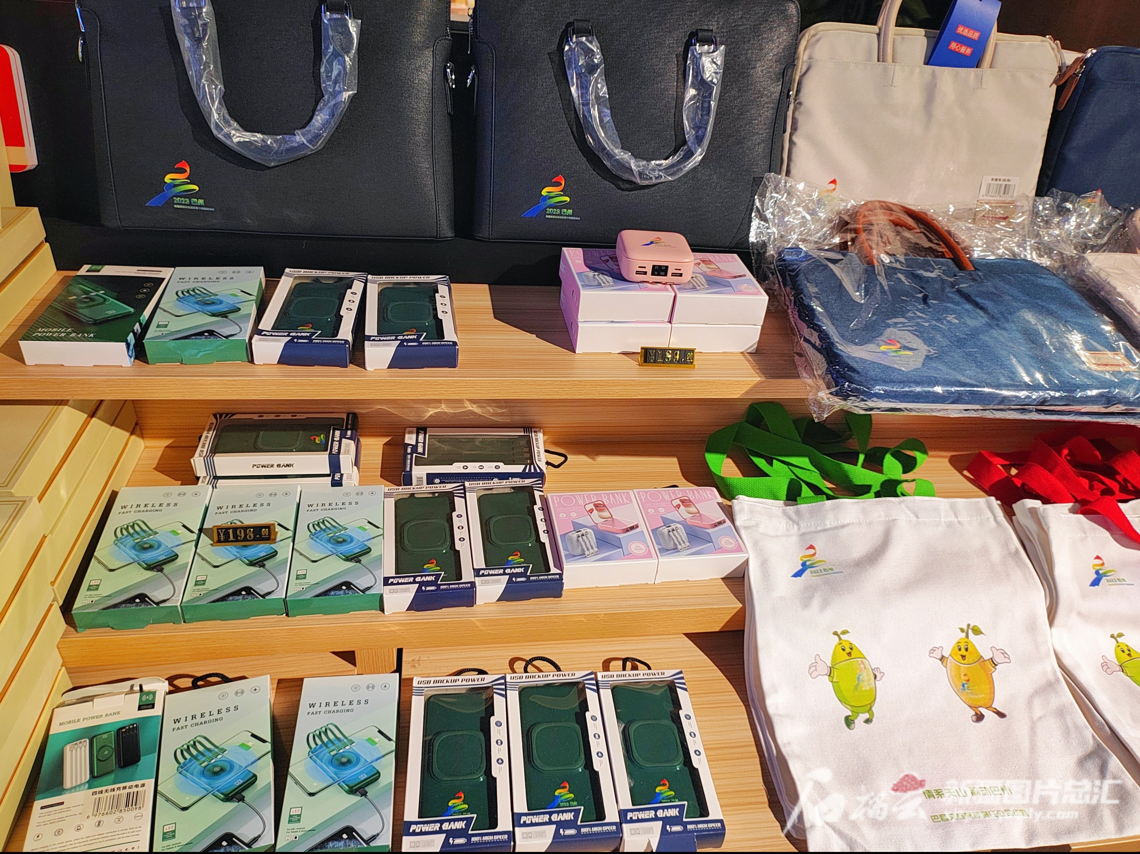 自治区十四运新潮电子系列文创纪念品和文创手提包。天山网-新疆日报记者 董亮摄
