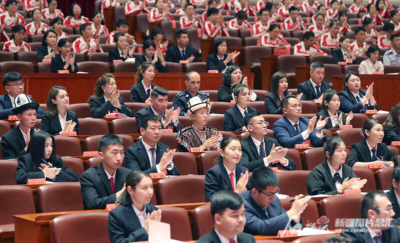 8月15日,大会听取共青团新疆维吾尔自治区第十三届委员会工作报告,与会代表报以热烈掌声。石榴云/新疆日报记者 崔志坚摄
