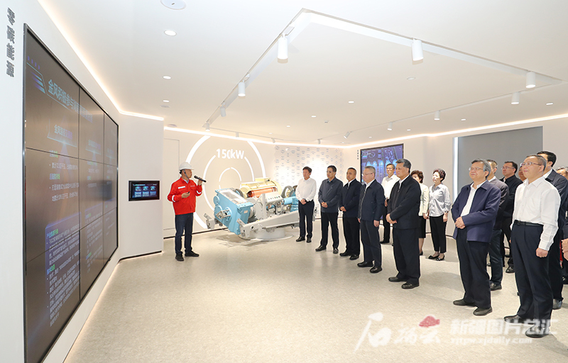 8月15日至17日,湖南省党政代表团来新疆考察对接对口支援工作。这是8月15日,马兴瑞、沈晓明、艾尔肯·吐尼亚孜等在金风科技达坂城产业基地,考察装备制造业发展情况。石榴云/新疆日报记者 李瑞摄