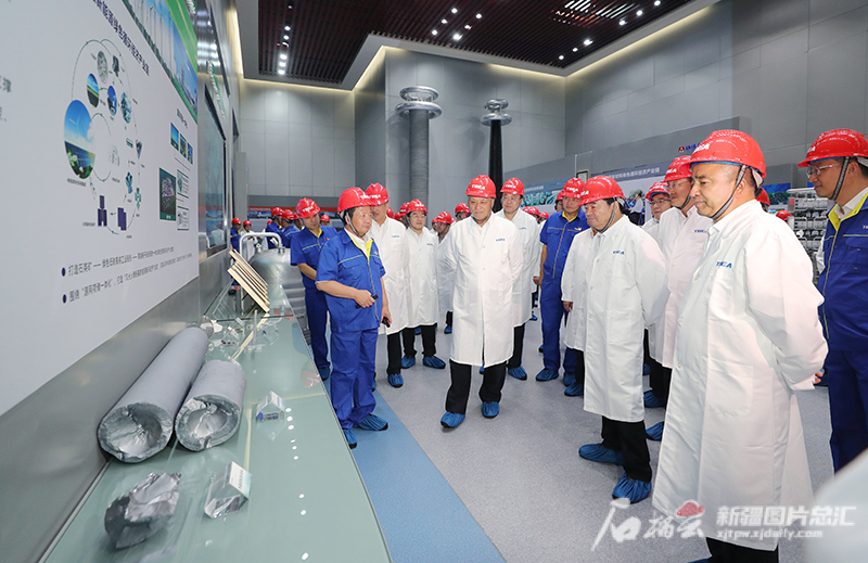 8月29日,马兴瑞、郝鹏、艾尔肯·吐尼亚孜等在位于昌吉市的特变电工新疆输变电科技产业园,调研产业发展、科技创新工作。石榴云/新疆日报记者 周鹏摄