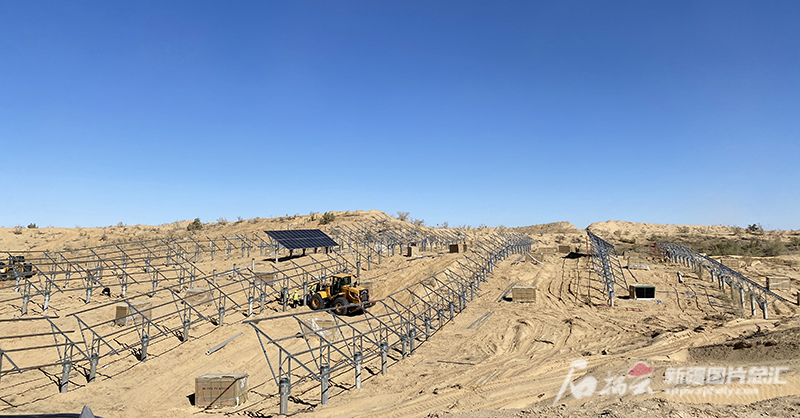 乌鲁木齐市米东区北部沙漠光伏基地项目建设现场(9月30日摄)。王磊摄