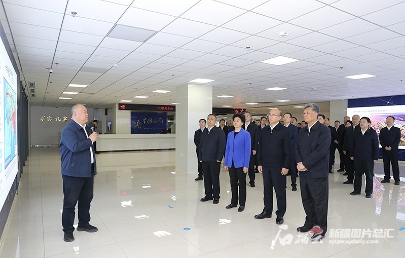 10月10日,马兴瑞、许勤、梁惠玲、艾尔肯·吐尼亚孜等在乌鲁木齐国际陆港区,考察商贸物流、向西开放工作。石榴云/新疆日报记者崔志坚摄
