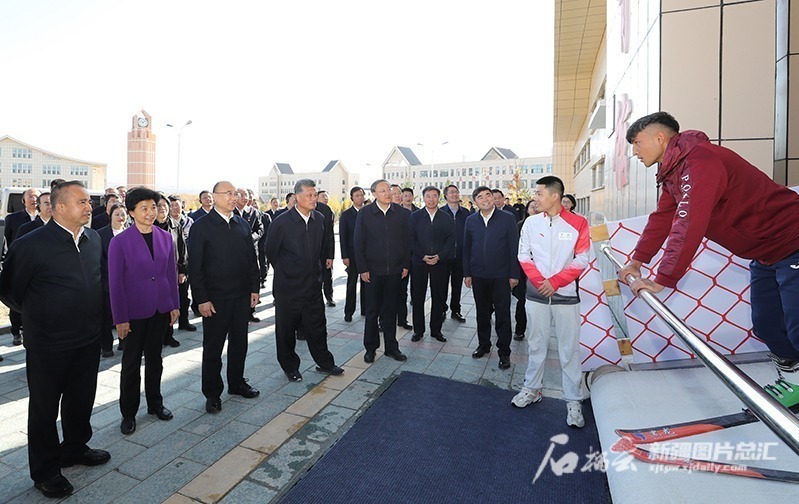 10月11日,马兴瑞、许勤、梁惠玲、艾尔肯·吐尼亚孜等在阿勒泰职教园区调研教育援疆成效。石榴云/新疆日报记者 崔志坚摄