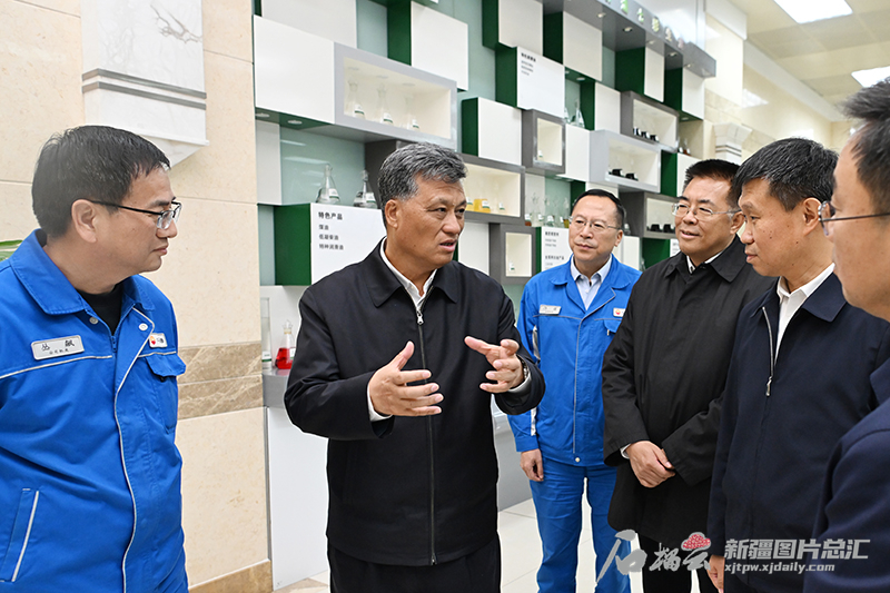 11月8日,自治区党委书记马兴瑞在克拉玛依市调研。这是马兴瑞在中石油克拉玛依石化有限责任公司实地察看炼化产品的生产研发、科技创新等情况。闵勇摄
