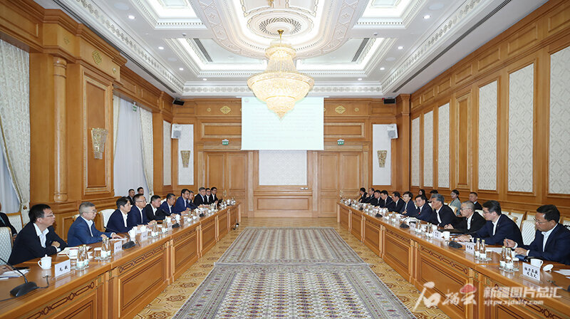 11月15日晚至16日,自治区党委书记马兴瑞率中国新疆友好交流访问团出访土库曼斯坦。这是11月16日,代表团一行与中国石油(土库曼斯坦)阿姆河天然气公司代表就加强能源合作、保障油气稳定运输等作交流。记者 崔志坚 摄