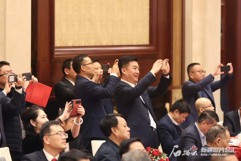 2月7日,在2024年春节团拜会上,与会代表用手机记录精彩演出。石榴云/新疆日报记者 韩亮摄
