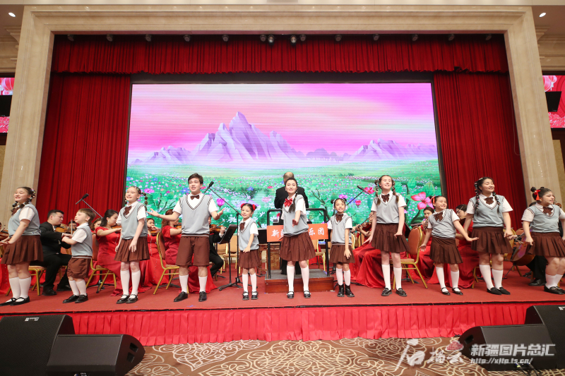 2月7日,在2024年春节团拜会上,雨点柠檬少儿合唱团演唱歌曲《天山上最美的花》。石榴云/新疆日报记者 崔志坚摄