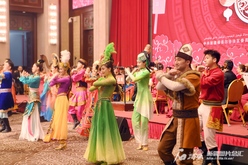 2月7日,自治区党委书记马兴瑞,自治区党委副书记、自治区主席艾尔肯·吐尼亚孜等与全区各族各界代表欢聚一堂、共庆佳节、喜迎新春。石榴云/新疆日报记者 崔志坚摄