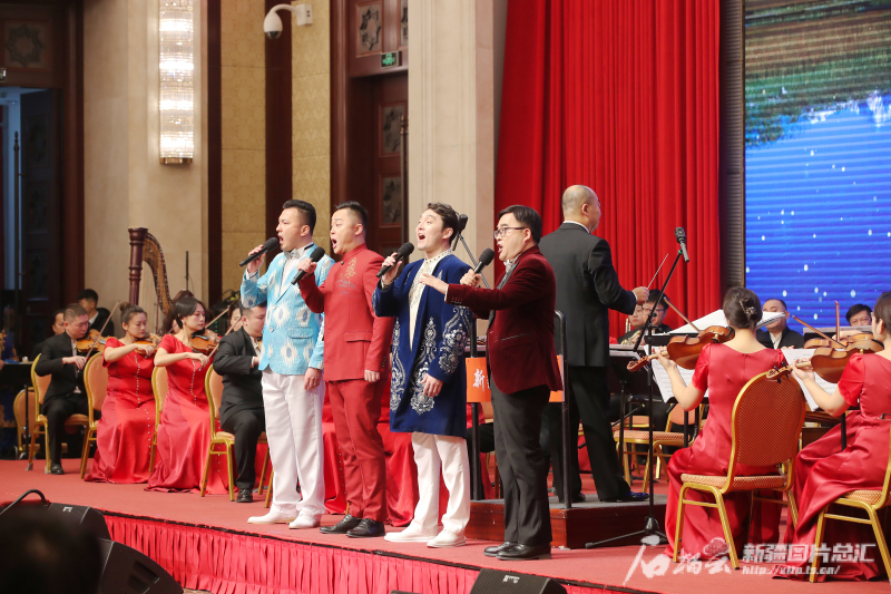 2月7日,在2024年春节团拜会上,演员合唱歌曲《掀起你的盖头来》。石榴云/新疆日报记者 崔志坚摄