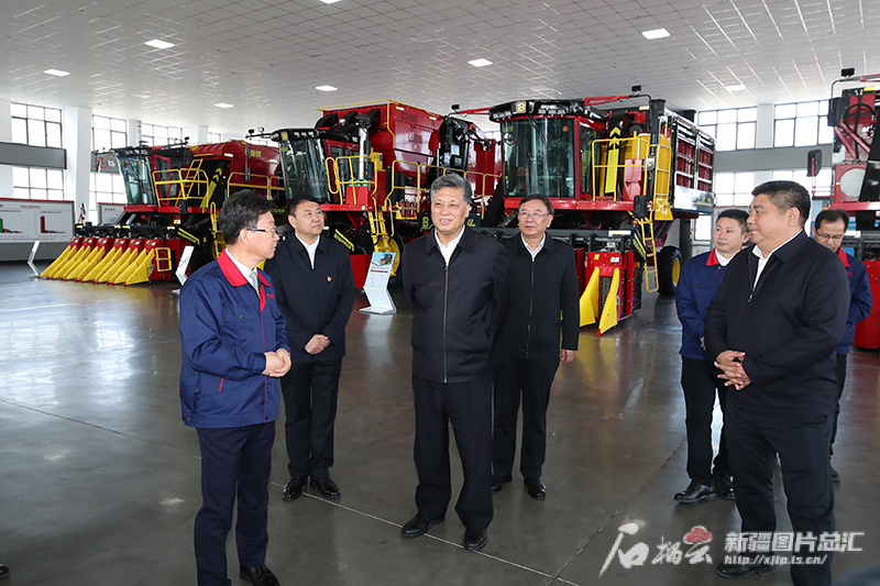 4月5日,自治区党委书记马兴瑞在位于乌苏市的新疆钵施然智能农机股份有限公司,了解企业生产经营情况。石榴云/新疆日报记者 崔志坚摄