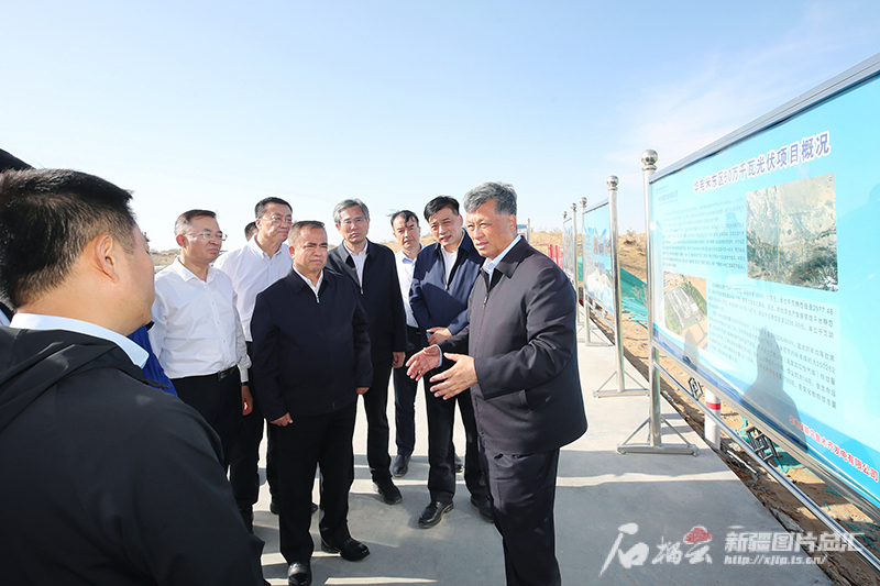 乌鲁木齐市米东区北部沙漠光伏基地正加快建设。18日下午,马兴瑞、艾尔肯·吐尼亚孜来到这里,沿途察看项目建设情况,并先后到中绿电350万千瓦光伏项目、华电50万千瓦光伏项目建设现场,听取项目规划、建设情况介绍,和有关方面负责同志共同研究推进工作。他强调,要加大力度推进项目建设,强化新能源接入电网等各方面保障,确保项目高质高效建成投运。要着眼发展大局、立足现实需要推动新能源产业发展,更好发挥在保障能源安全和区域投资增长、工业经济发展中的重要作用。要充分发挥中央企业和区属国有企业的主力军作用,增强地方党委政府的主观能动性,加快推动新能源项目建设和产业发展提质增效。