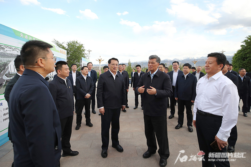 6月2日,重庆市委书记袁家军,自治区党委书记、兵团党委第一书记、第一政委马兴瑞来到位于伊吾县的新疆(伊吾)云上丝路算力融合中心,实地考察建设运营情况。石榴云/新疆日报记者 崔志坚摄