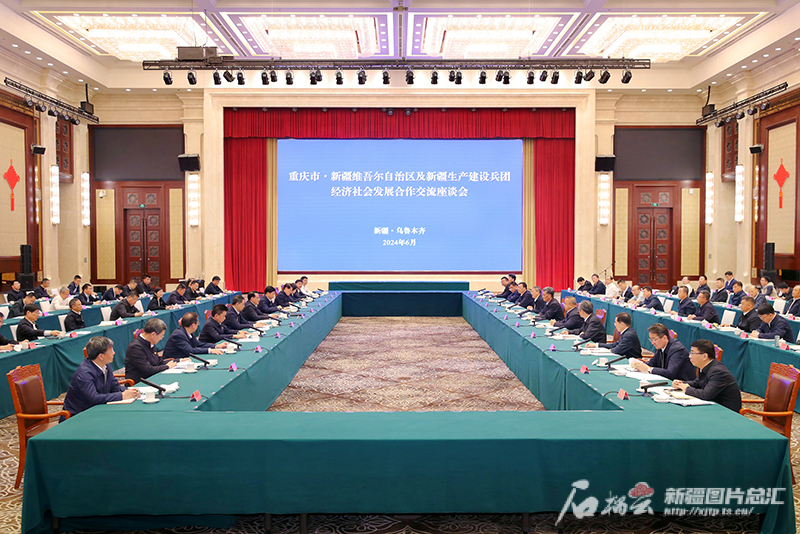 6月4日,重庆市·新疆维吾尔自治区及新疆生产建设兵团经济社会发展合作交流座谈会在乌鲁木齐召开。石榴云/新疆日报记者 崔志坚摄