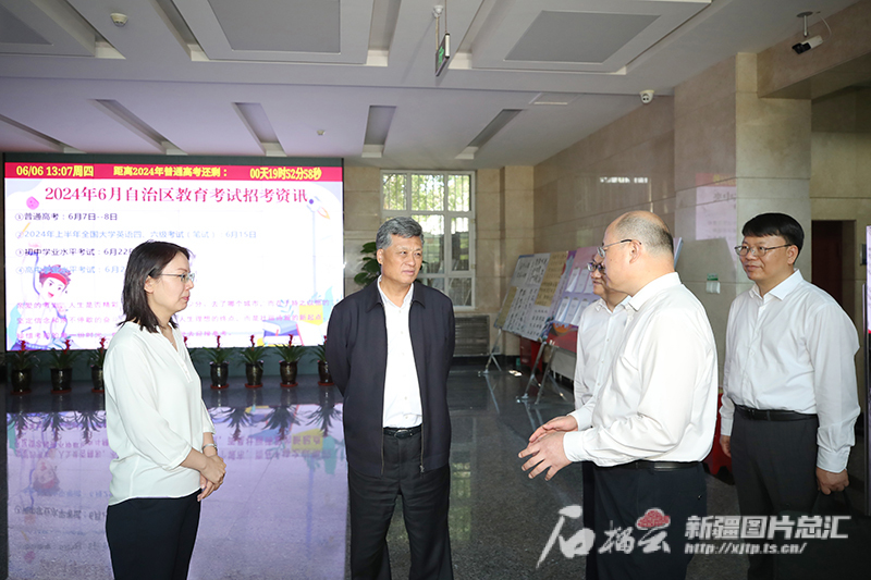 一年一度的高考即将到来,马兴瑞来到自治区教育考试院,向教育部门负责同志询问各项准备工作进展,察看了解考点分布、考场设置等实况。他强调,高考事关千家万户利益、牵系广大学生前途。各地各有关部门要本着对考生、家长和社会高度负责的态度,严之又严、实之又实、细之又细做好考务组织工作,以贴心暖心举措加强提示、引导和考试服务,全流程落实考试安全监管措施,严密防范各类风险,有效应对处置突发事件,确保新疆高考工作安全顺利、平稳有序进行。要着眼教育服务新疆各项事业长远发展,统筹做好考试、招录等各项工作,着力培养和选拔更多人才在新疆学习、到新疆发展、为新疆奉献,为新疆高质量发展和长治久安提供源源不断的人才支撑。