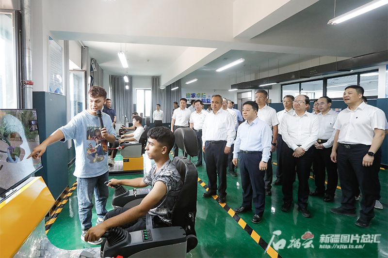 8月18日至20日,江西省代表团来新疆考察对接对口支援工作。这是8月19日,江西省委副书记、省长叶建春,自治区党委副书记、自治区主席艾尔肯·吐尼亚孜,在克孜勒苏柯尔克孜自治州公共实训基地调研就业援疆工作。石榴云/新疆日报记者 谢龙摄