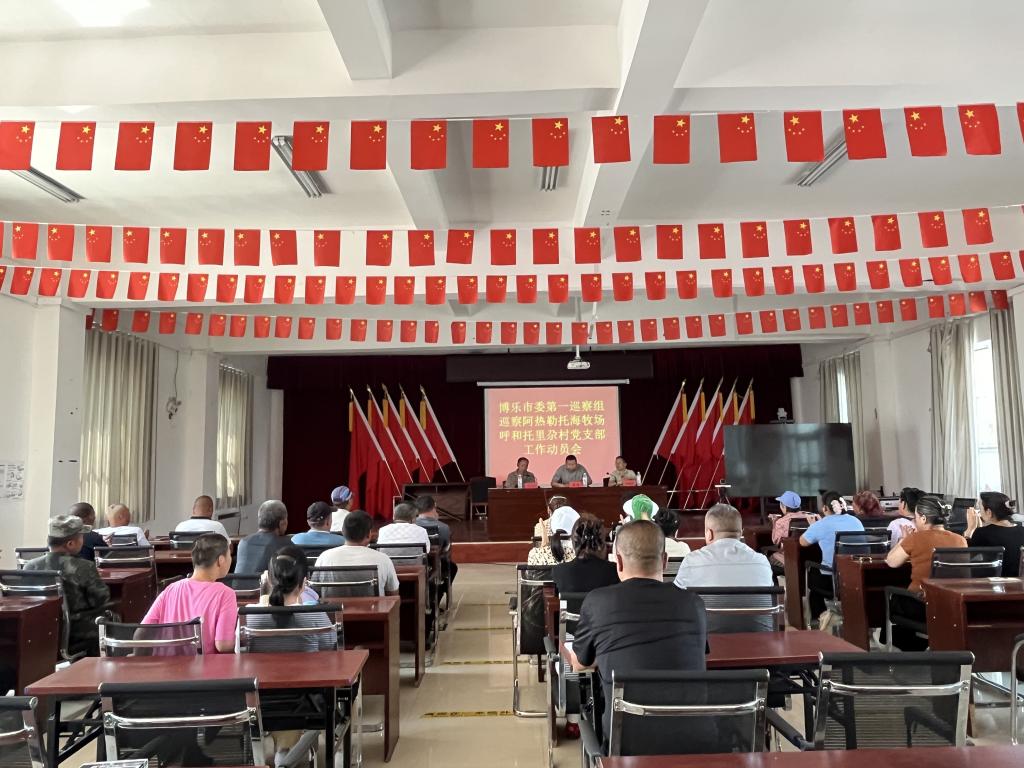 2025年6月14日,博乐市委第一巡察组在阿热勒托海牧场呼和托里尕村召开巡察工作动员会。博乐市委第一巡察组全体成员,呼和托里尕村“两委”班子成员、党员、低保户、双联户代表及村民代表共30人参会。