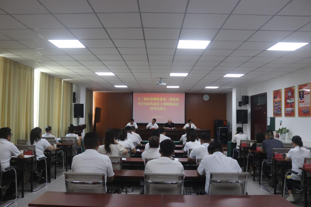 2025年7月3日,自治州党委第三巡察组在博乐市青达拉街道召开巡察工作反馈会,州党委巡察工作领导小组成员、州纪委副书记、监委副主任田兆东同志,市党委常委、市人民政府党组成员、副市长温荣同志出席会议并讲话。自治州党委第三巡察组部分成员,市委组织部、市委巡察办、市委宣传部、市委机要保密局分管领导,青达拉街道党工委领导班子,机关三办四中心主任、退休干部职工代表、各社区党总支书记、企业负责人等参加会议。