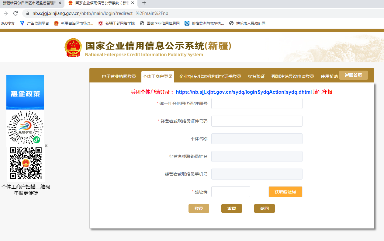 手机版:个体工商户可在微信小程序搜“丝路有信”,点个体工商户年报,输入营业执照上的信用代码,获取验证码登录填写。