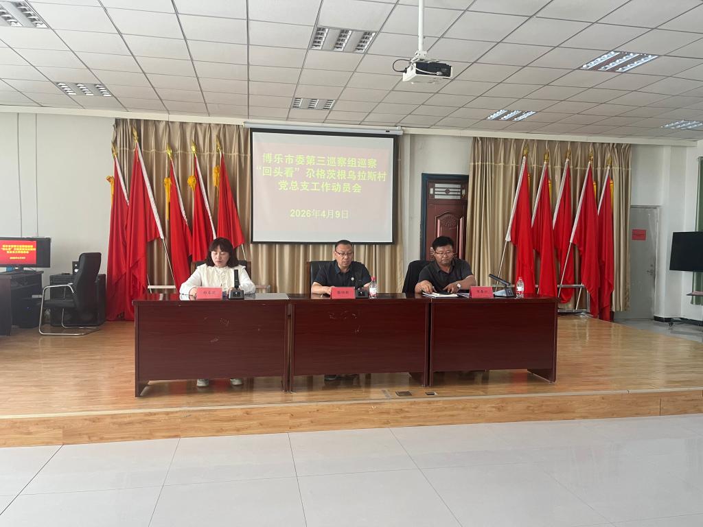 4月9日,博乐市委第三巡察组在尕格茨根乌拉斯村召开巡察“回头看”进驻动员会。巡察组全体成员、包联领导、尕格茨根乌拉斯村“两委”班子成员和党员、“四老”人员、村民代表等50余人参加会议。