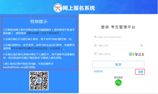 注册登录网上报名系统必须在电脑端操作(请勿使用手机或平板电脑),建议使用谷歌浏览器。