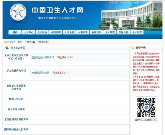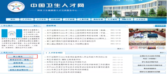 (一)登录中国卫生人才网(www.21wecan.com),在左侧“考生入口”下,点击“网上报名”。