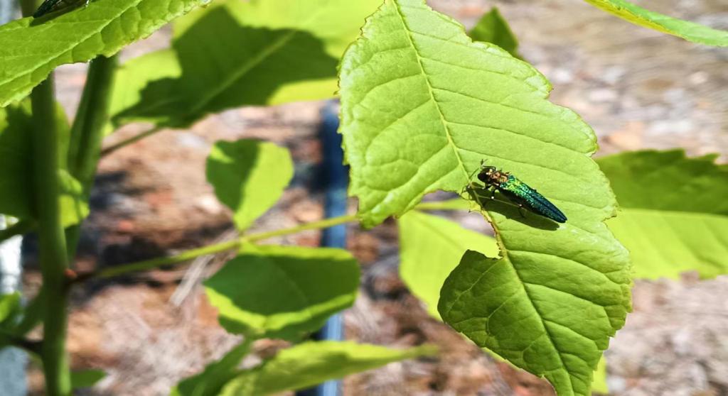 根据近期监测,白蜡窄吉丁成虫开始羽化,羽化达到了次高峰,大量成虫开始在叶片上取食补充营养,白蜡窄吉丁成虫羽化阶段是防治成虫的最佳时段,各单位要抓紧时机开展防治。