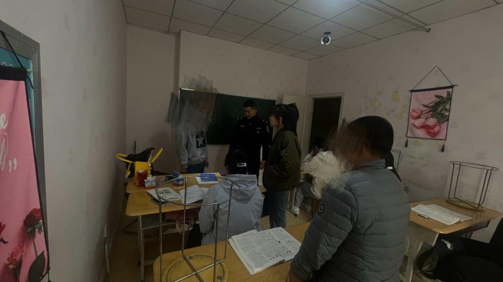 近日,博乐市“双减”工作专班接到群众电话举报有人在博乐市南城吾饮良品二楼违规开展学科类补课。博乐市“双减”工作专班联合南城街道社区工作人员及社区民警到现场开展入户取证,现场发现1名教师王某(社会人员)及9名初中学生正在进行物理课程培训,房间摆放大量课桌椅、黑板以及物理、数学教辅教材。