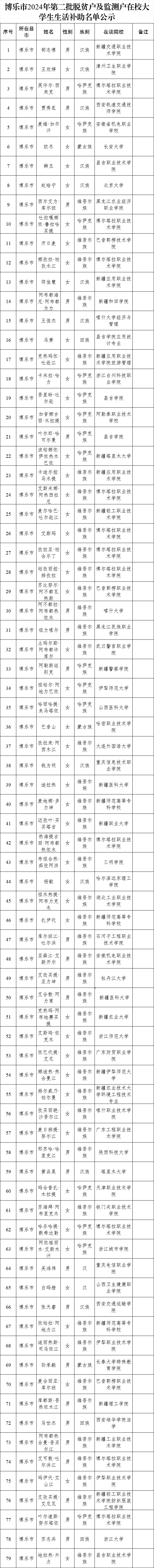 附件:博乐市2024年第二批脱贫户及监测户在校大学生生活补助名单公示
