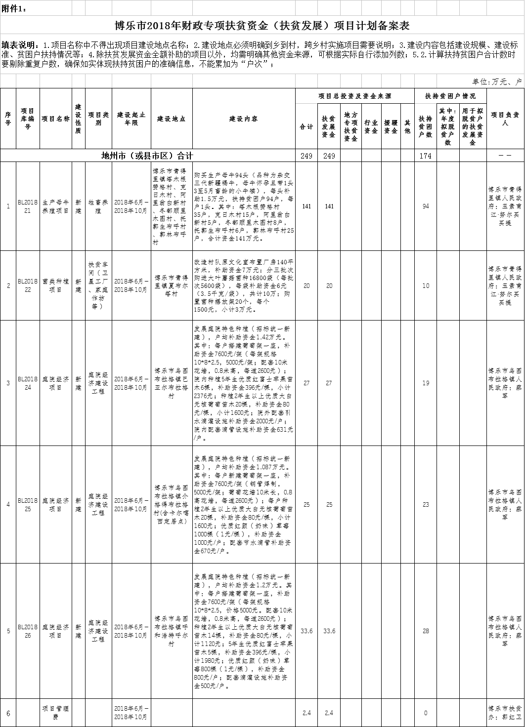 附件:⒈博乐市2018年财政专项扶贫资金(扶贫发展)项目计划备案表